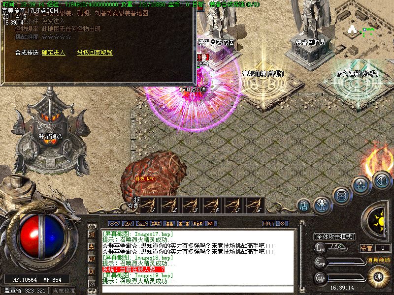 【装备回收】转生装备每个阶段的装备都能在土城NPC那里回收!换的声望-经验-元宝!所以请大家不要乱扔装备.