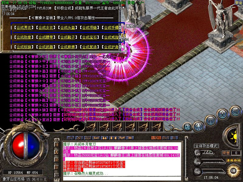 【新手上线】平衡了三职业!人物上线就送新技能和大量财富包括元宝!升级无需打怪!泡点直接到顶级!