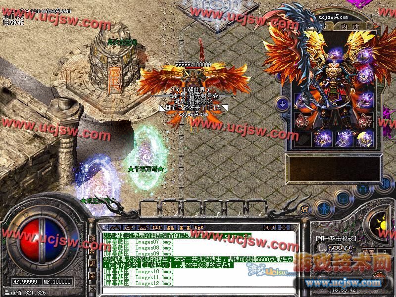 羽化就是大家常见的转生,本站一共九次转生,满转可获得6600点属性点,还有珍贵的【王朝圣水】,是PK中必须的物品!
