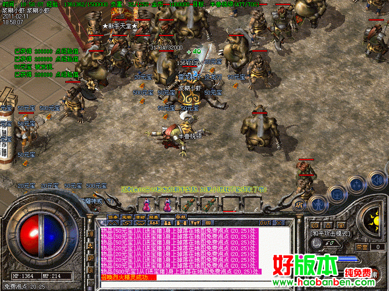 每天晚上18点-19点 荣誉大战,获胜行会可以自动领取20000元宝的奖励!三天后沙战,奖品:3000000元宝