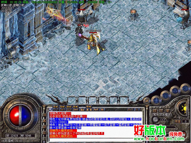 特色:加入盛大最新装备(传奇套装)最新怪物(冰眼巨魔)最新地图(消失传奇之城)(衣服专暴殿)(武器专暴殿)