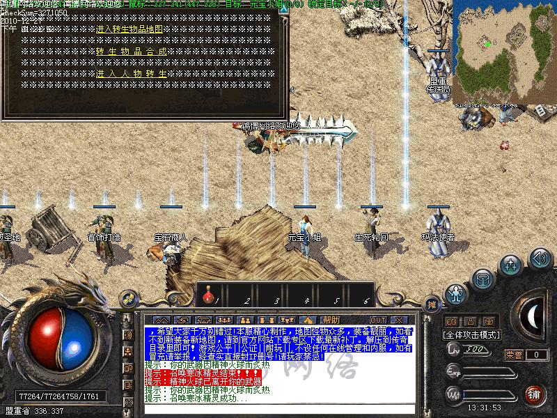 18转:420级,转生后攻击力4.9倍,送1000属性点,等级降到220级,最高可升460级,需要:琼浆玉露10个、元神丹10个、还魂草10个