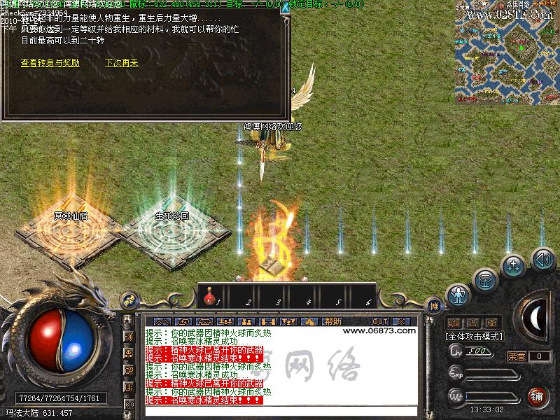19转:450级,转生后攻击力5.2倍,送1000属性点,等级降到240级,最高可升480级,需要:不死金丹10个、血玲珑10个、太乙10个