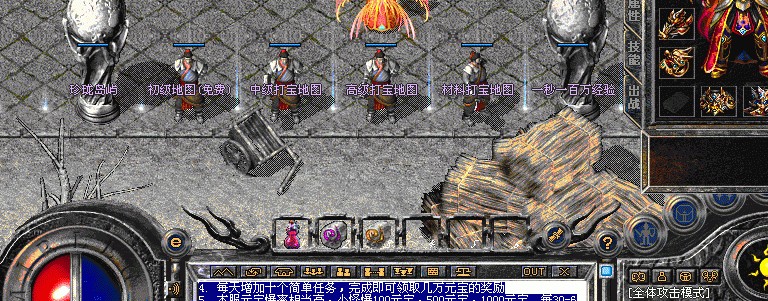 5. 本服元宝爆率相当高,小怪爆100元宝,500元宝,1000元宝。每30-60分钟都会刷出一个元宝精灵,每次刷出都有系统提示,请留意游戏内公告提示。元宝精灵每次必爆10000元宝。