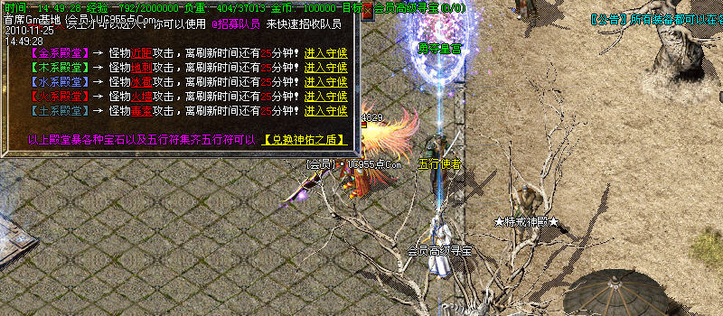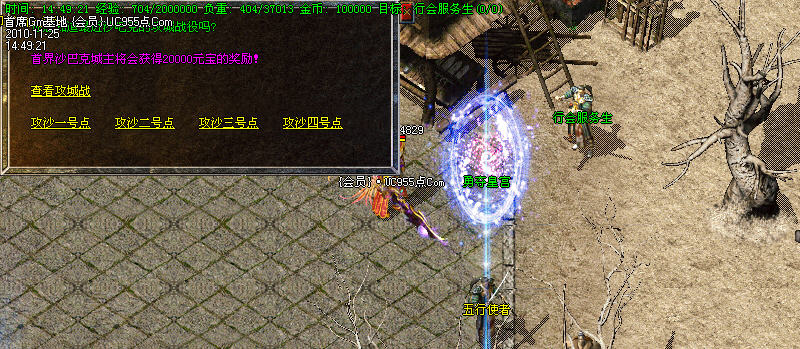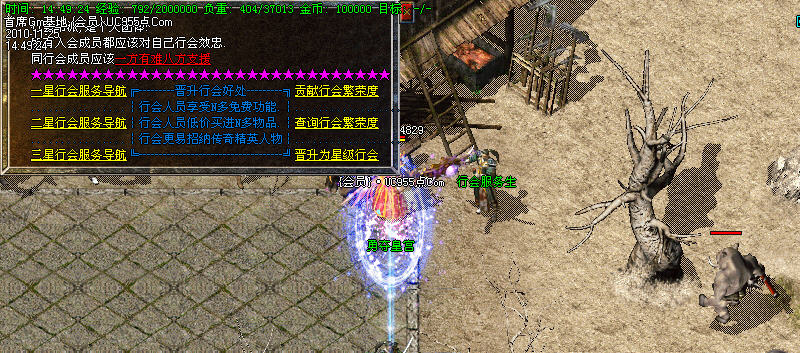 2:在行会服务处进入练级区域打怪。