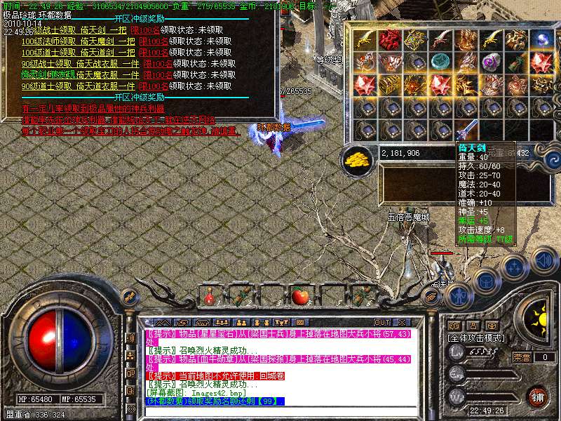 3.新增地图爆三职业倚天剑.倚天衣服。倚天不能合成只能靠打