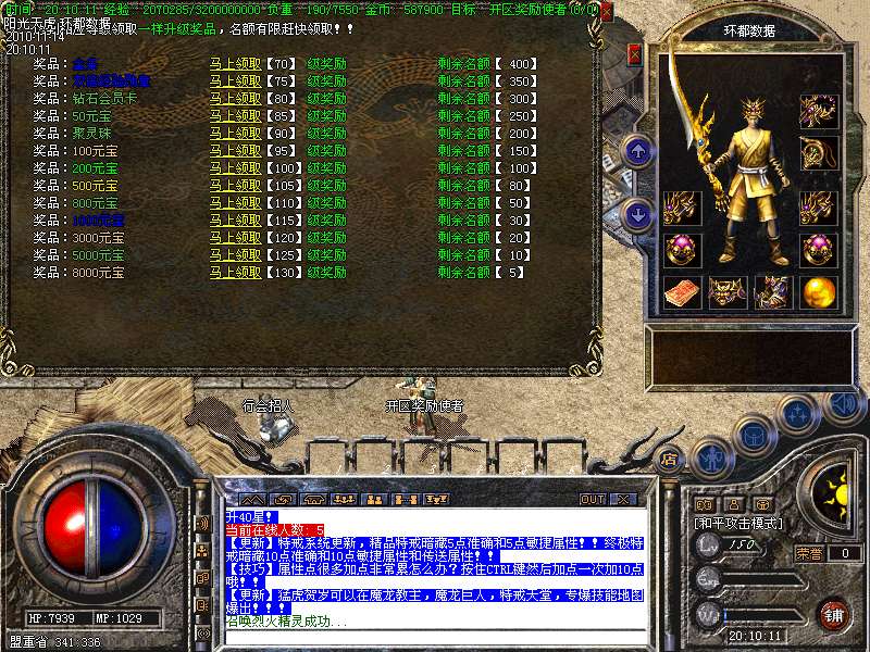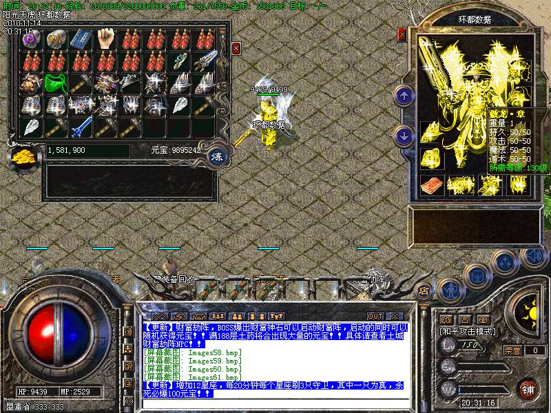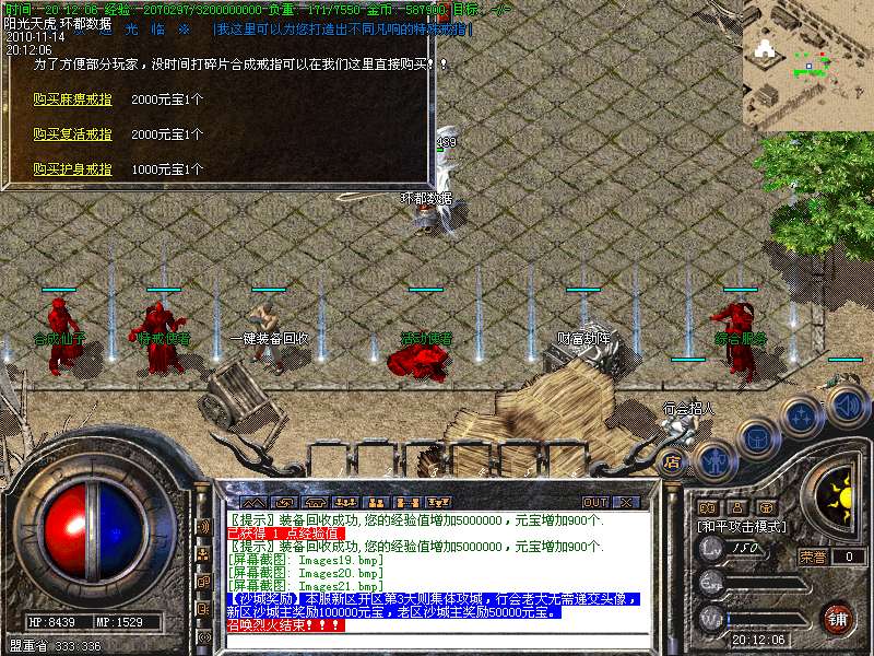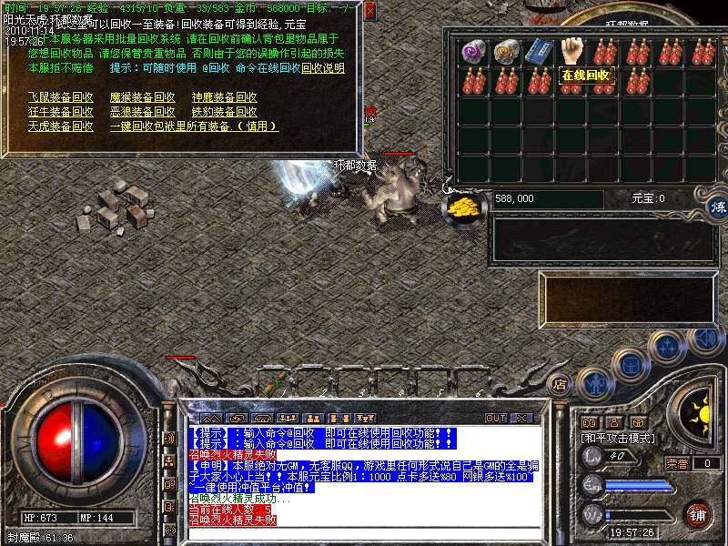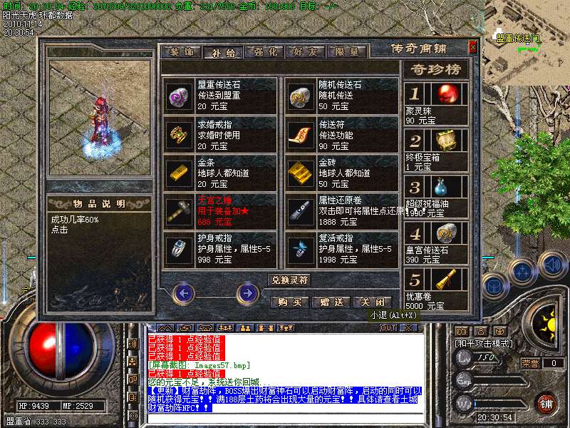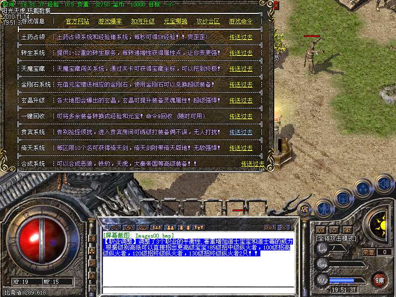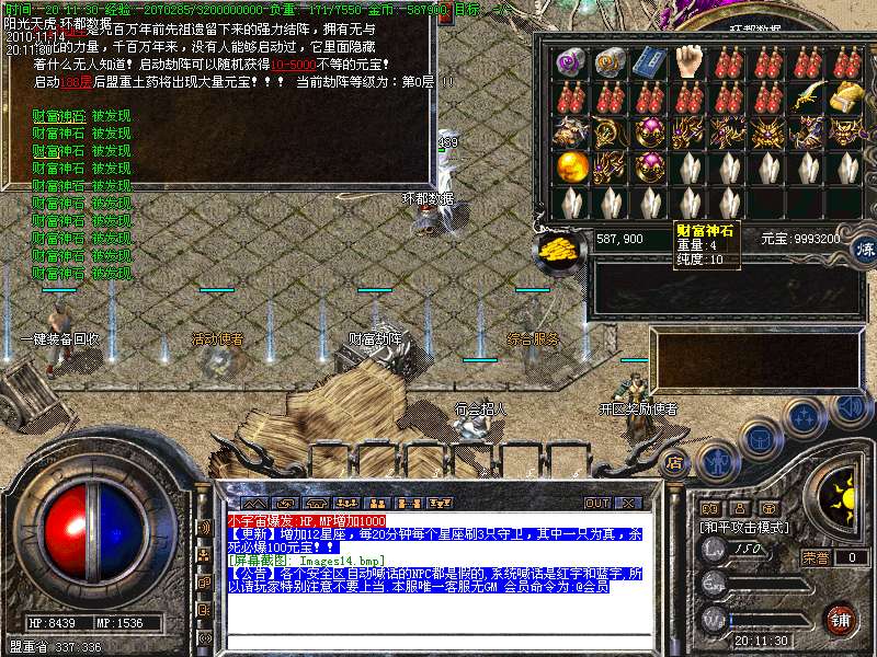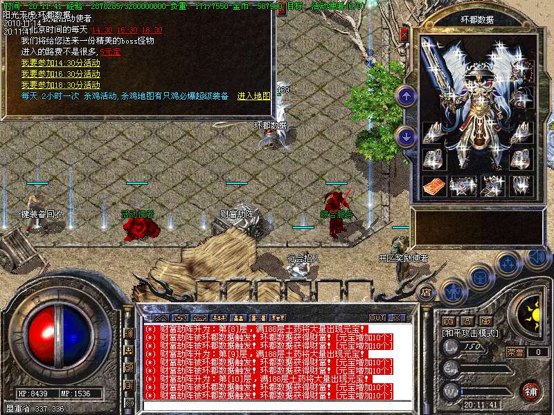 【更新】财富劫阵,BOSS爆出财富神石可以启动财富阵,启动的同时可以随机获得元宝!!满188层土药将会出现大量的元宝!!具体请查看土城财富劫阵NPC!!