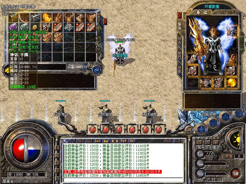 【装备评价系统】:游戏可的每一件装备,系统根据装备的等级,属性,都会作出一个评价并评分,玩家在更换身上的装备,系统会提示当前单件装备的分值及全身装备评价总分,同时,全服玩家的装备评价有排名,玩家可以通过点击游戏界面的对应按钮查看。一身极品装备,能让全服玩家羡慕!