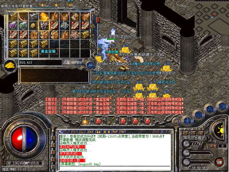 【传承宝盒系统】本服独一无二的高级功能,真正完美结合精炼系统,传承宝盒可以将一件蓝色以上级别的装备的附加属性摘下并保留在宝盒中,当玩家获得更高级装备时,就可以将低等级装备的极品属性转移到高级装备上来。因为,不管自己的装备是不是高级装备,都可以放心精炼,而不用担心浪费精炼材料。