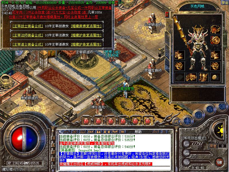 【王者天堂】每天15点.19点.0点开放.此地图任何大小怪物都可以有几率爆出雷霆和战神装备.