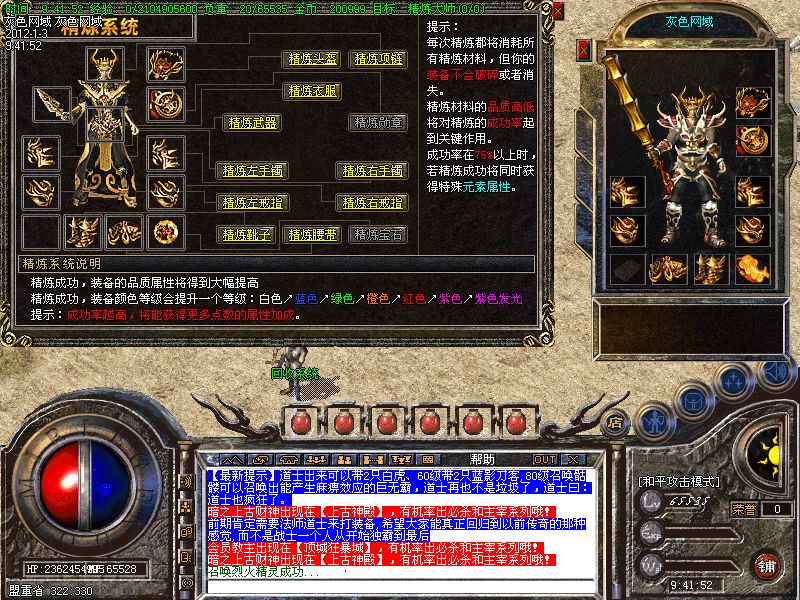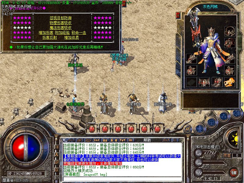 【装备合成】设计了装备合成功能,可以拿中级装备合成高级装备,详细介绍见土城左下角NPC.