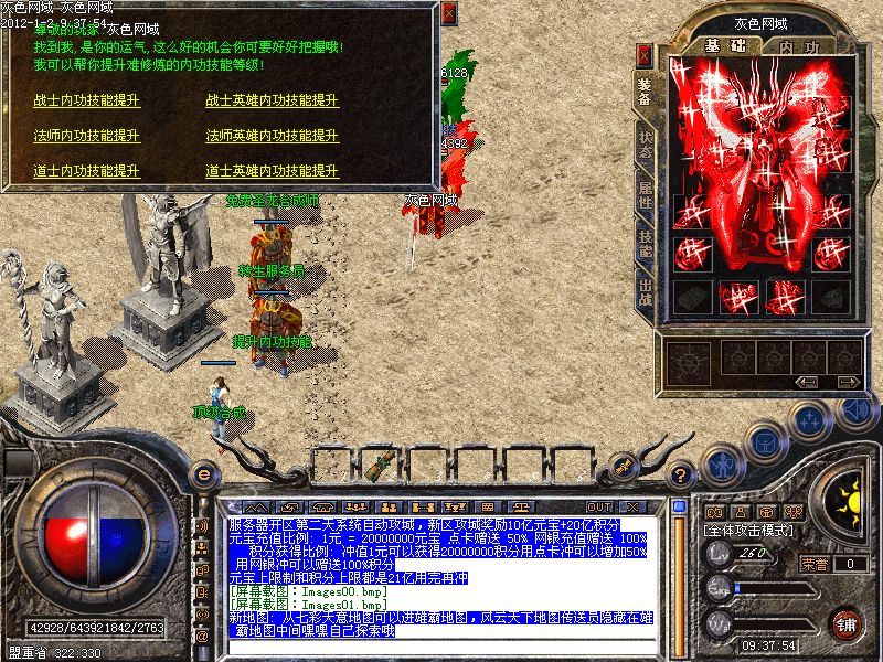 人物等级300级封顶,内功等级255级封顶,内功技能等级提升,点击土城内功提升NPC,不必自已修炼,180级以后只能在激情免费泡点地图修炼,请玩家相互转告