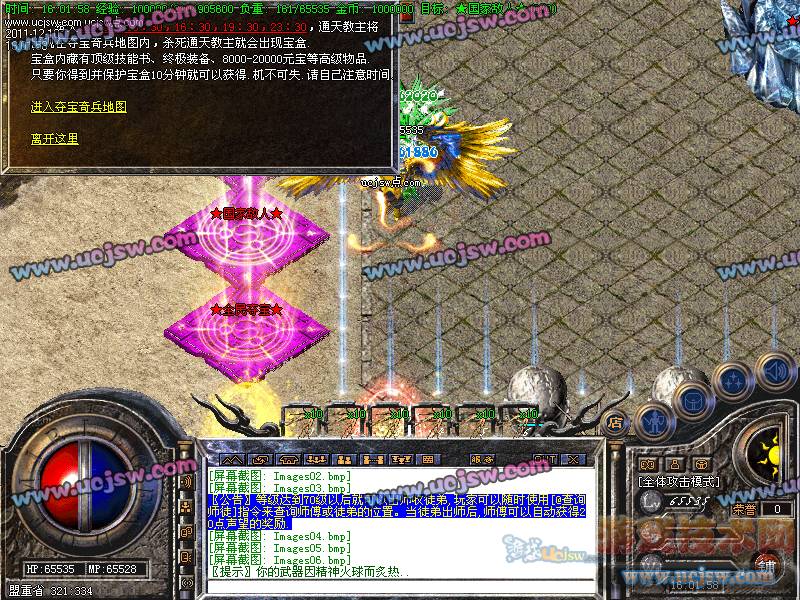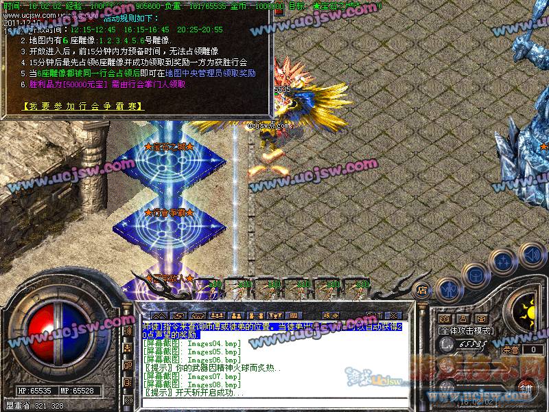 关于攻沙奖励的公告:新区第一任沙巴克城主奖励:150万元宝;老区(合区后)攻沙的奖励为:50万元宝;老区天天攻沙,让大家激情爽歪歪!