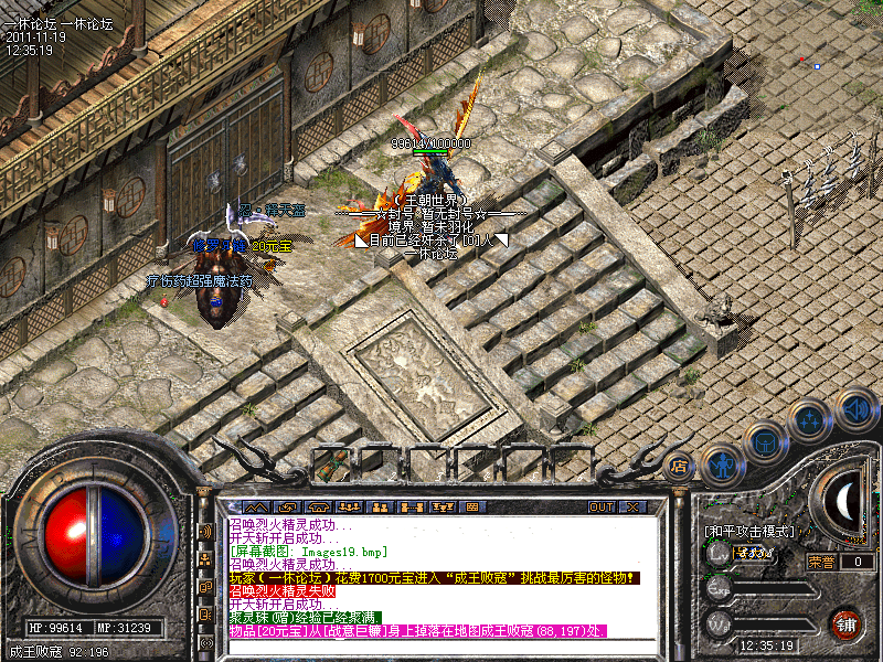 比奇皇宫提供行会战必须的场所。在比奇皇宫中杀人不红名,不同行会自动变色!