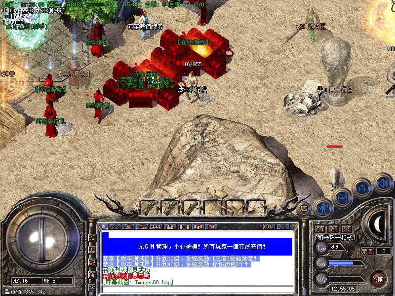 二.【刷新介绍】:赤月老窝,每90分钟刷新一只烟花恶魔,60分钟刷出一只烟花金刚,一只烟花血魔,赤月祭坛,60分钟刷出一只烟花金刚一只烟花血魔.可获得大量超级礼包,本服务器开启超级礼包仅需要200元宝,打礼包开装备回收元宝是散人玩家不错的选择!