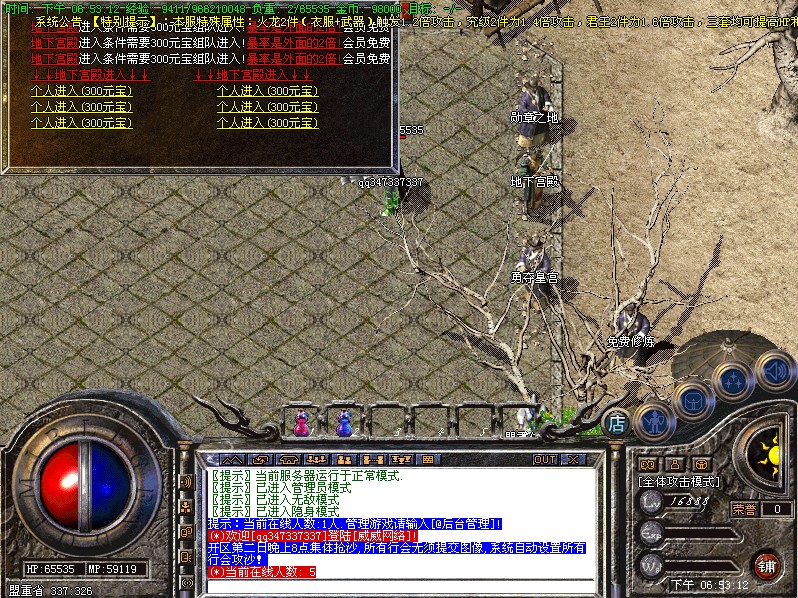 VIP打宝地图可以单人进入可组队进入,里面刷的BOSS可暴本服所有装备,和技能.暴率相当高!!