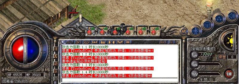 皇冠至尊:四冠分为→红(0.1倍攻击),紫(0.2倍攻击),蓝(0.3倍攻击),金(0.4倍攻击)