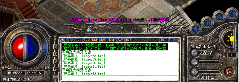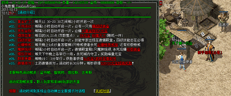 模拟攻城:全服100以上玩家才可以进入,下午15,晚上19点各一场,再现千人攻城场面,杀死守卫及城主,获得不同数量元宝,即杀即得