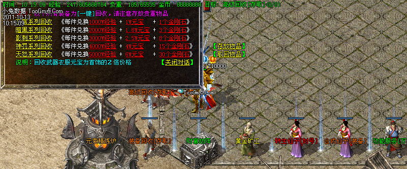 新增[在线回收],新手玩家打到初级装备,随时随地的@回收,很方便很给力